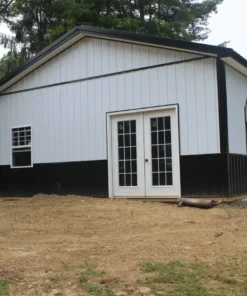 The building is enclosed with Everlast 28-gauge LYNX Series metal roofing and siding, and features a 3-foot wainscot around all sides for added style and protection. A Therma Guard R-9 vapor barrier is installed beneath the roof panels to reduce moisture buildup and increase energy efficiency.