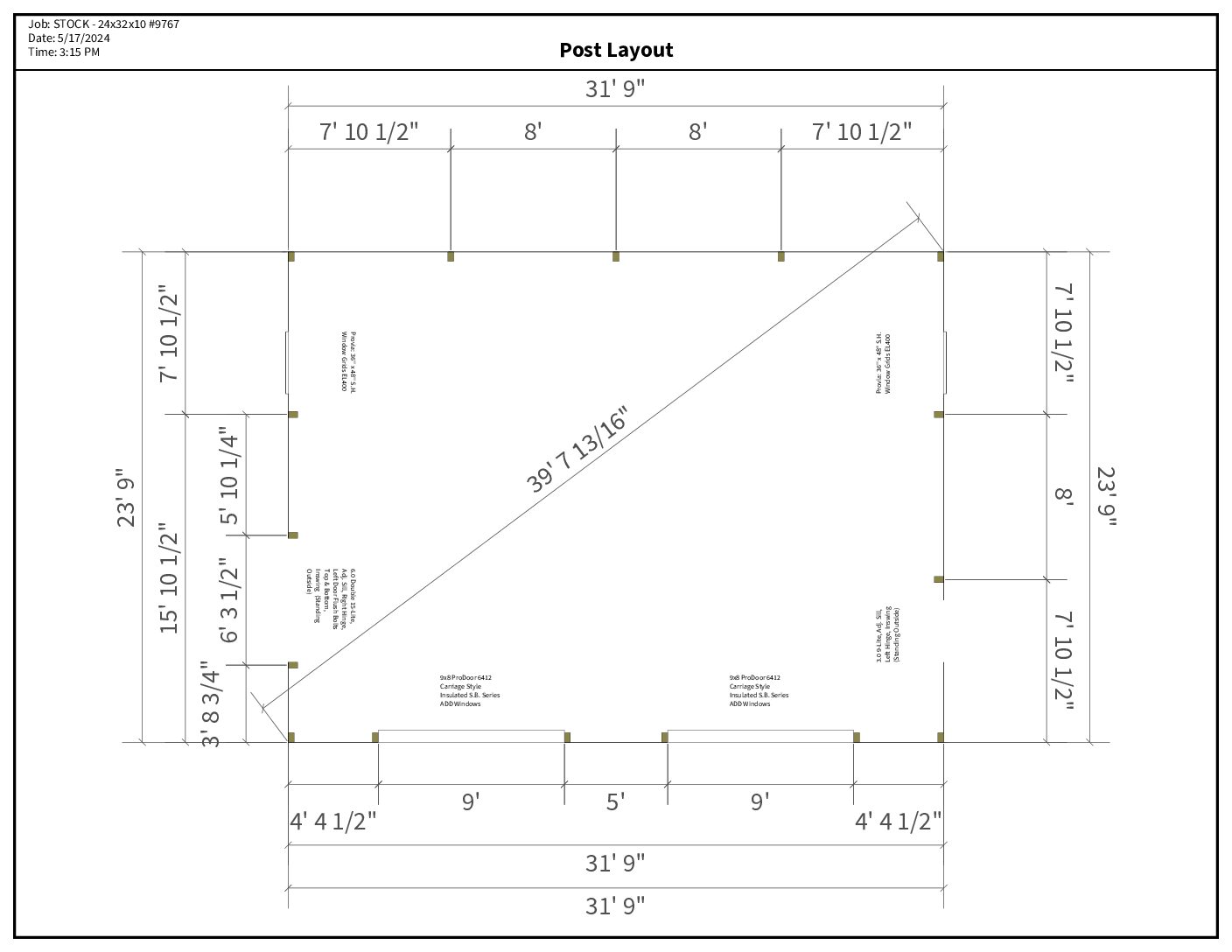 Kit Description: 24′ x 32′ x 10′ Pole Barn