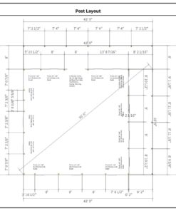 Material for 32’x60’x12’ pole barn W/ Lean-To and Attic: 3-ply 2×6 glu-lam posts. (1) 5×16 precast concrete footer block & (1) 80 lb bag sakrete per post. 2-ply 2×12 MSR headers. Pre-fabricated Attic Storage trusses with 7/12 roof pitch, 25-5-5 loading, 24″ on center with framing for 14’x7′-6″ attic room (NO FLOOR OR STAIRS) with one (1) 2-ply girder for stair opening and two (2) gable trusses with horizontal girts 24” on/center. 12” overhangs on eaves & gables with vented, aluminum soffit and painted steel fascia. 2×8 treated skirtboard.