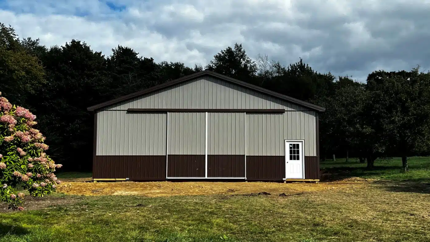The exterior is finished with Everlast 28-gauge LYNX Series metal roofing and siding for long-lasting protection and curb appeal. A 4-foot wainscot wraps all sides of the building for added durability and visual contrast. A Therma Guard vapor barrier is installed beneath the roof for enhanced insulation and moisture control.